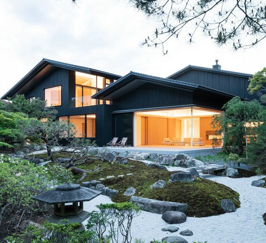 高い生垣や樹木に囲まれた敷地には、従前の木造2階建ての古い日本家屋がすっぽりと納まっており、また、家屋に面して人の手入れが何年も施されていない200坪ほどの日本庭園を有していた。本プロジェクトは、この日本庭園のある住宅の建て替え計画である。