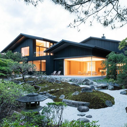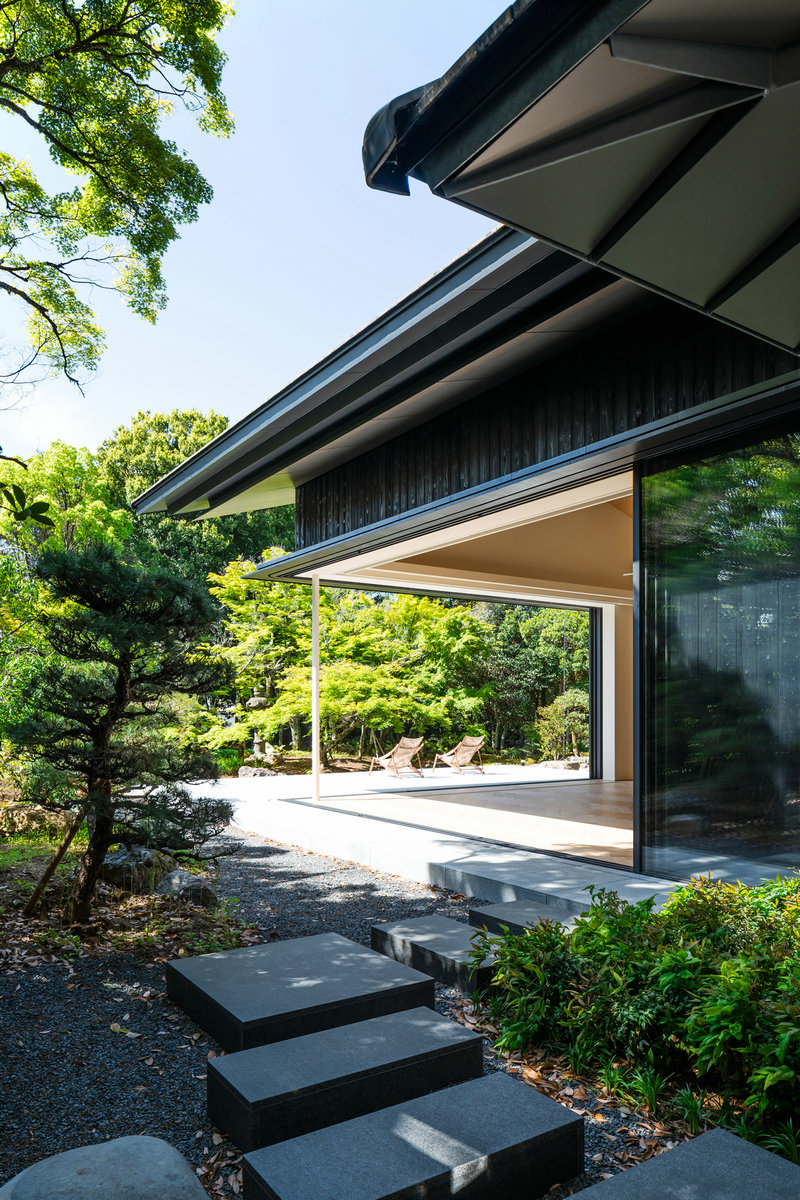 高い生垣や樹木に囲まれた敷地には、従前の木造2階建ての古い日本家屋がすっぽりと納まっており、また、家屋に面して人の手入れが何年も施されていない200坪ほどの日本庭園を有していた。本プロジェクトは、この日本庭園のある住宅の建て替え計画である。