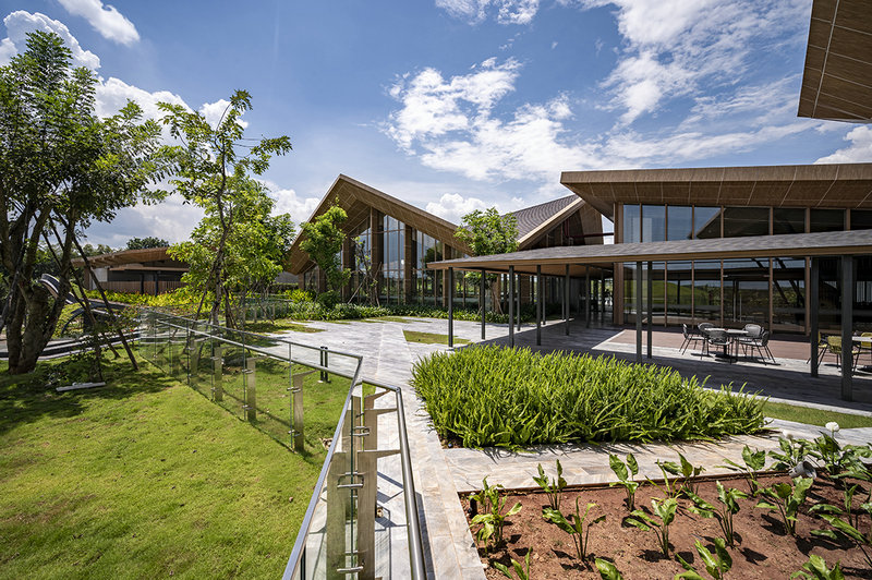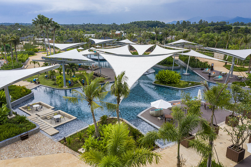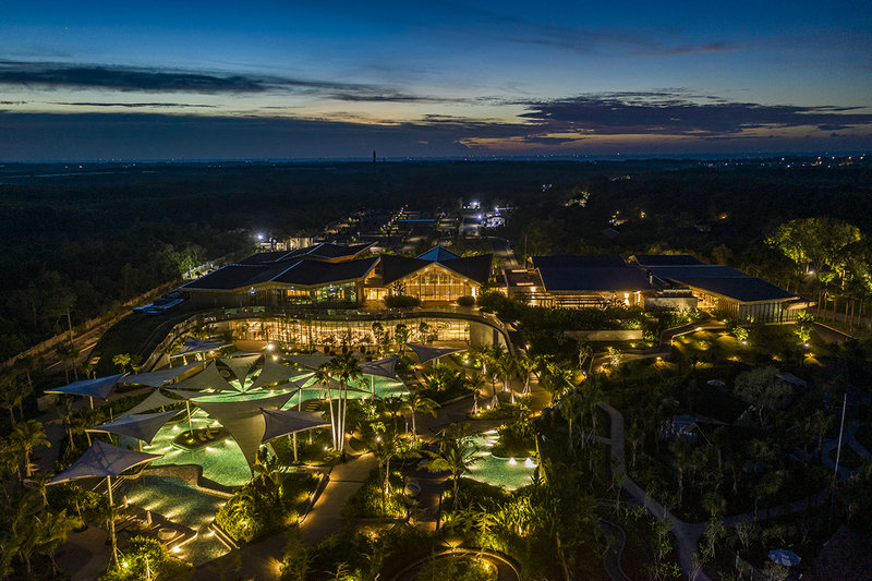 温泉ホテルや温泉会所が森の器としてシンボリックに存在している一方、公園内に点在する驿站は森に集まり風や花に舞う蝶や鳥のような建築イメージで設計しており、この地が自然と建築が調和された新たな森に成長することを願っている。